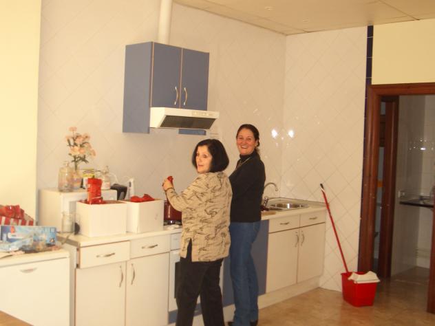 Que contentas se ven a Rosi y a Maite seguro que de limpieza de los utensilios, después de preparar ese rico chocolate que hemos visto anteriormente en esas dos perolas tremendas, en esta asociación nadie pone pegas a nada si hay que hacer se hace y sin preguntar que, ellas se conforman con que todo salga a pedir de boca, que su esfuerzo sea para bien y que todas esas voluntarias queden satisfechas de que su trabajo en la chocolatada sea reconocido con ese suspiro,"pero que bueno estas condenao",