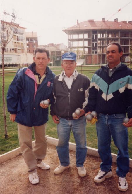 En esta foto también me he dejado de poner el día que se hizo, así que como dicen en mi pueblo, el que no tiene cabeza tiene que tener pies, esta foto se hizo en las pistas viejas de petanca, el día 19 de Marzo del año 2000 Amigos aunque parezca mentira todos los deportes necesitan su entrenamiento, y aquí tenemos la muestra de unos amigos del Club de Petanca Oyonesa, unos amigos que momento que tenían estaban en las pistas de petanca pasando un rato muy agradable, entrenando para haber si el próximo torneo sacaban una buena puntuación, estos entrenamientos y por supuesto los triunfos que un gran tanto por ciento son debidos a que entrenan continuamente, y ahora desde hace un tiempo que tienen pistas nuevas, este deporte...