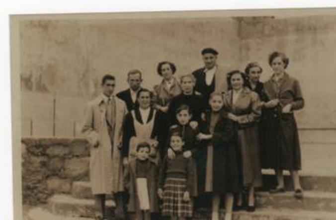 Aquí tenemos a la familia palacios Galarza, y digo esas familias por que aunque hay mas apellidos, yo los ignoro, así que estas familias que buen sitio han cogido para hacerse una foto todos en familia, para cuando la viesen decir o acordarsen de lo que aquel día había sucedido o que tal se lo habían pasado, y también como cuando se hace una foto de familia con varios elementos siempre se coincide en reconocer como a cambiado el fulanito o el menganito, esta foto esta echa en las escaleras del frontón...