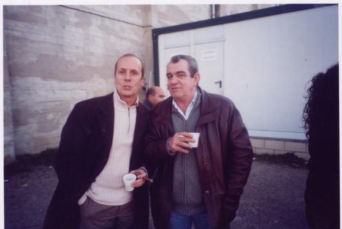 Amigos aquí tenemos a dos forofos del equipo de nuestro pueblo, en uno de los partidos que la Oyonesa jugo en el campo del Espinar, en aquel partido jugaban en contra esos dos hermanos que os he dicho en la otra foto, Nano y Santi pues en esta foto podemos ver al de la derecha que es Santiago Ruiz Carrillo Padre de esos dos chavales que son los dos hermanos a los que me refiero, el otro es otro amigo que es José Luis el de la tiende de chucherías que hay donde empieza la calle Mayor al lado del buzón,...