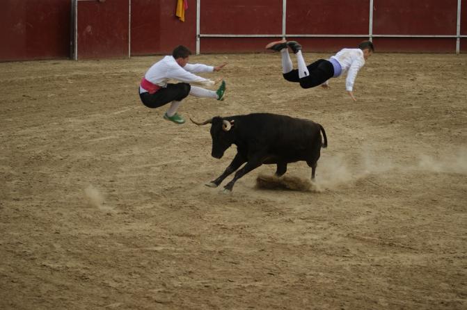 Saltando de dos en dos por encima de la vaca,