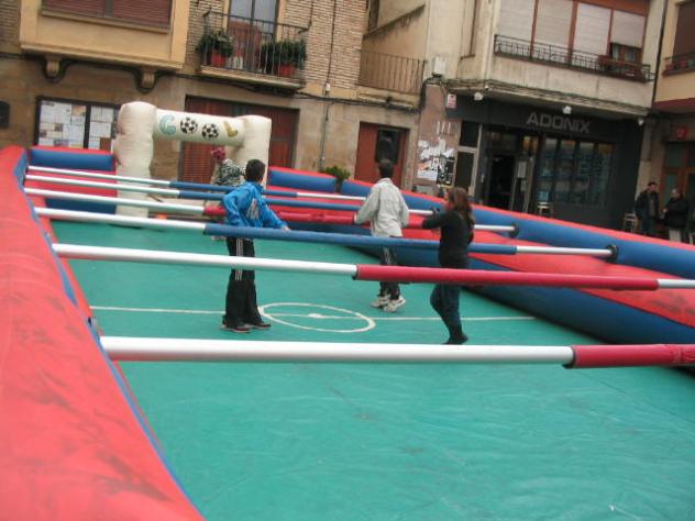 Futbolín humano en la plaza,
