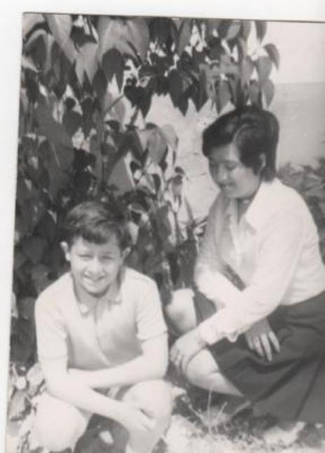 Mi prima y mi primo debajo de un árbol,
