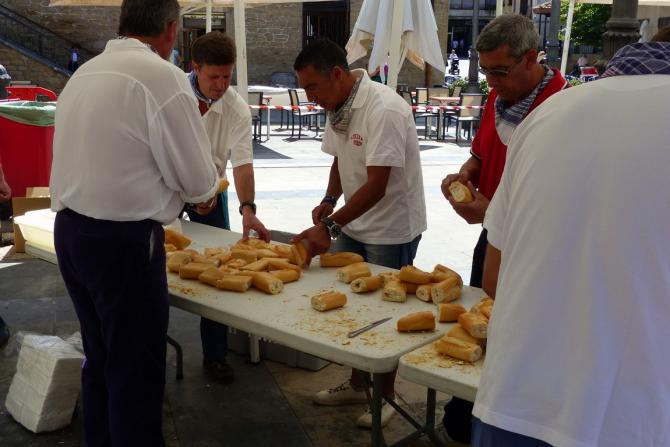 Cortando el pan para el chorizo,