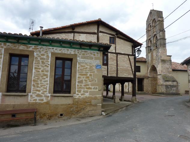 Escuela, casa de la maestra y espadaña iglesia,