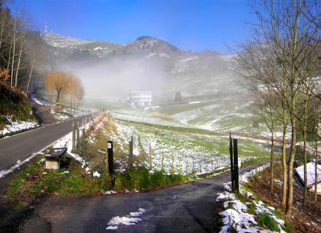 caserío de usurbe con niebla,