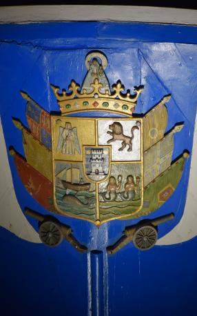 Escudo de Fuenterrabía en la proa de un barco pesquero