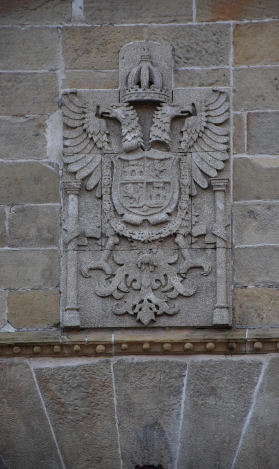 Escudo en la fachada del Parador Nacional de Turismo, antiguo castillo de Carlos V,