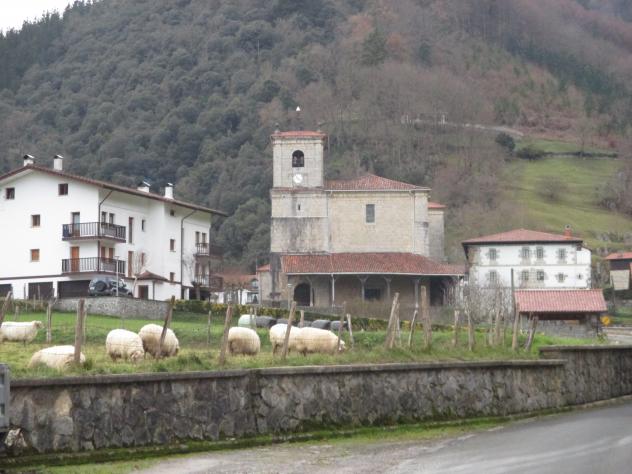 La carretera y el pueblo con la iglesia,
