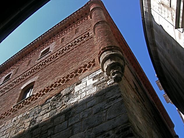 piedra, casi ciega sin huecos; una verdadera fortaleza, edificada a finales del siglo XIV por el tatarabuelo de Iñigo, Beltran Ibañez de Loyola. La mitad superior, de ladrillo y claro estilo mudejar, con numerosas