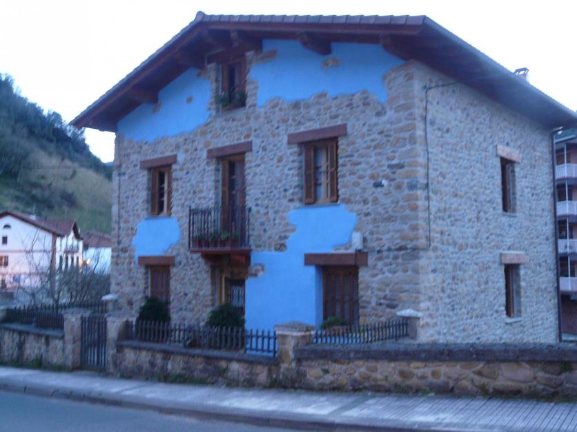Una casa con paños azules,