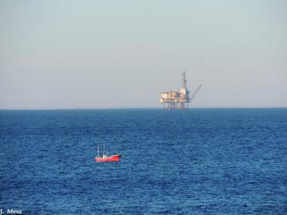 La plataforma marina Gaviota frente a la costa,