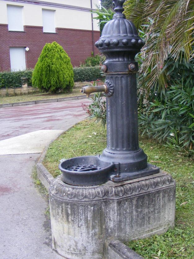 Fuente en un parquecito entre casas,