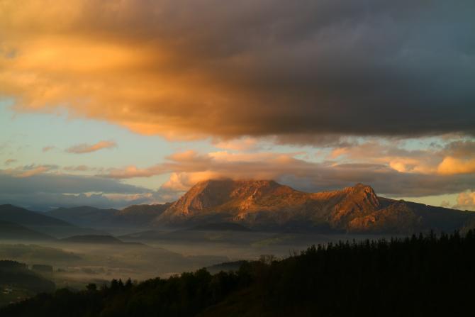 con el macizo de Anboto cubierto de nubes