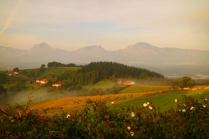 Vista del amanecer con nieblas y humedad desde el Barrio de San Juan de Momoitio,