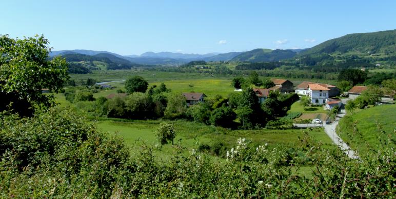 Caseríos y marisma, desde la carretera de Arteaga,