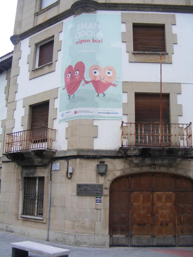 Pancarta de donación de sangre en el ambulatorio,