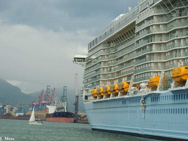 Velero junto a el Barco Anthem of the Seas,