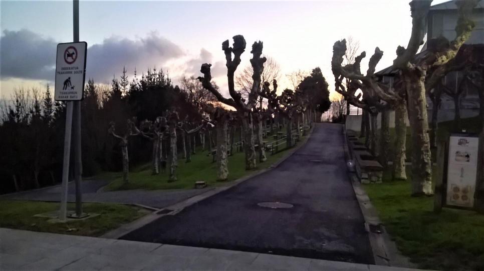 Jardín con paseo de platanos,