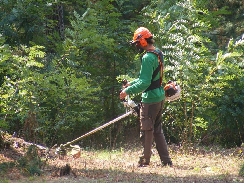 Desbrozando en el parque de aventura,