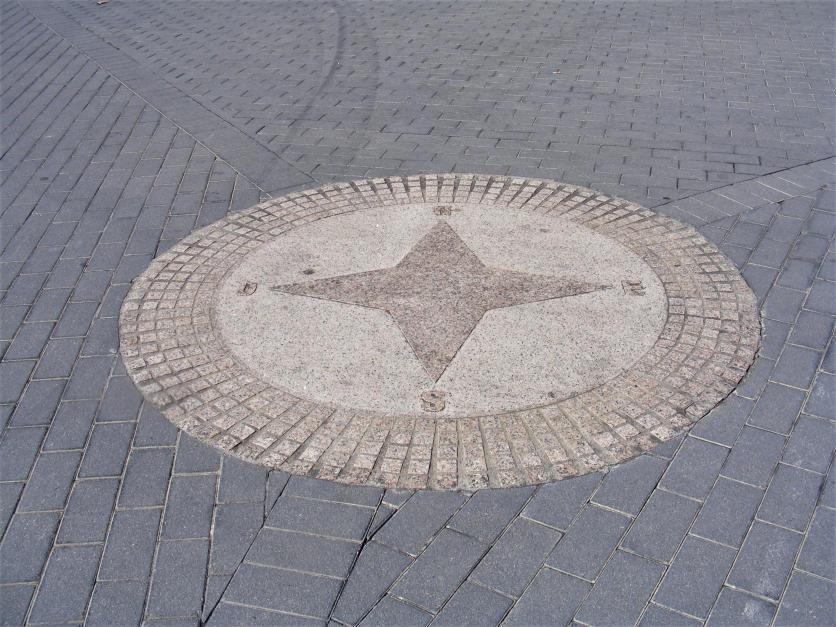 Los puntos cardinales en la hacera frente a la iglesia,