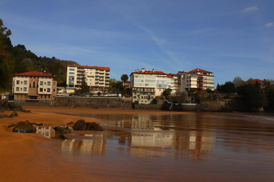 Cielo azul y marea baja en la playa de Laidatxu,