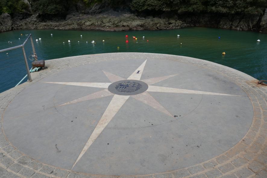 Rosa de los vientos en el malecón del puerto,