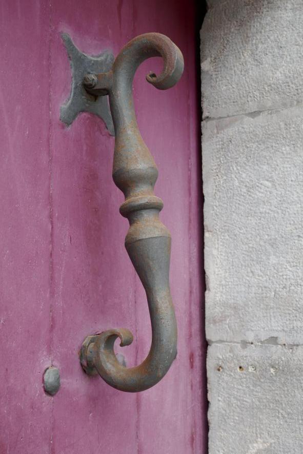 Gran llamador en puerta morada,