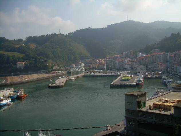 El puerto con el Puente Itsasaurre al fondo,