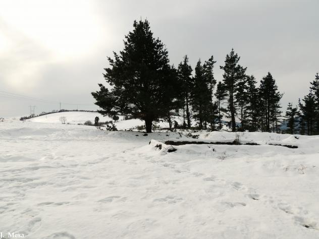 Pinar en la arboleda, con nieve,